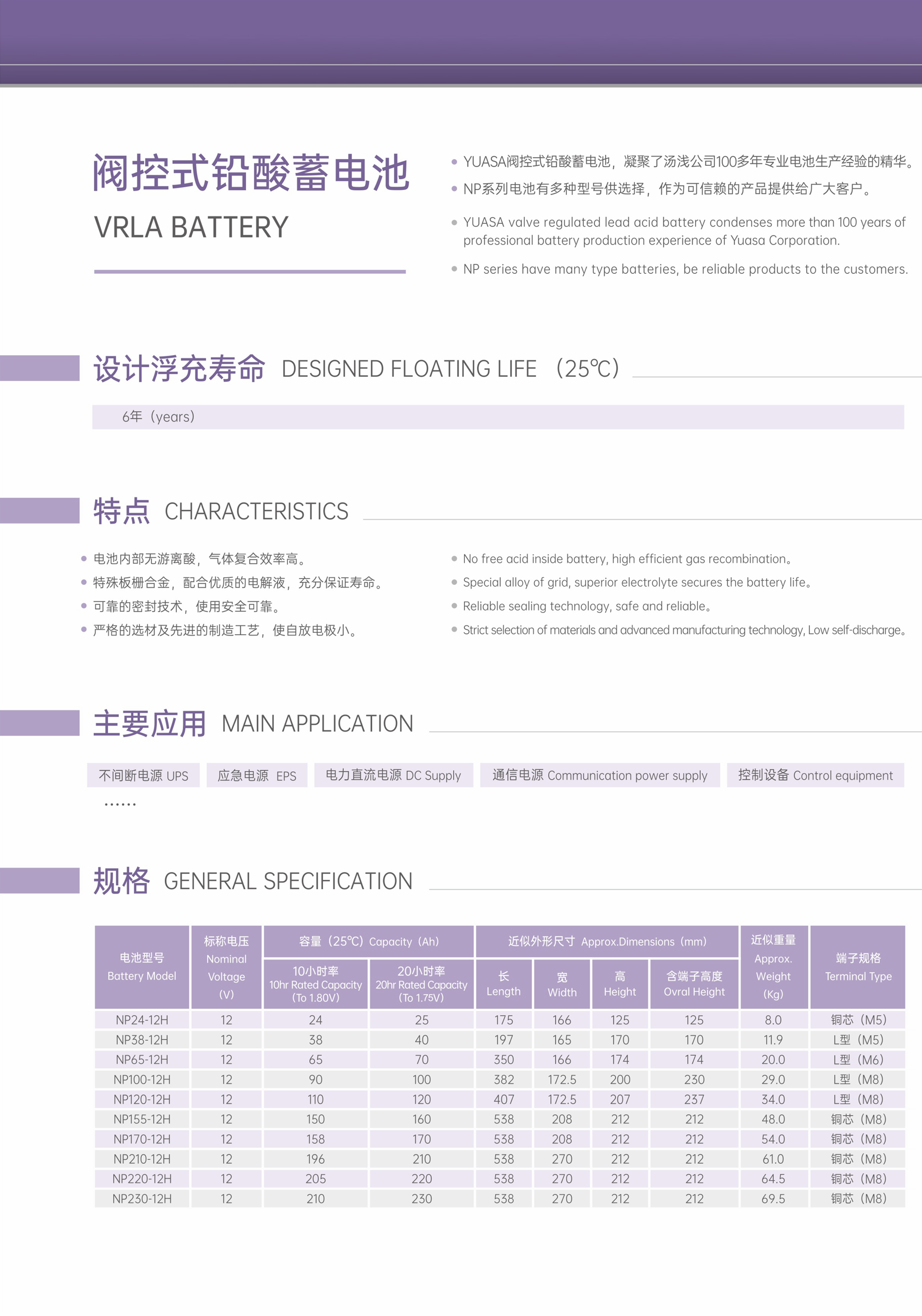 ● Special alloy of grid, adequate specific gravity of electrolyte